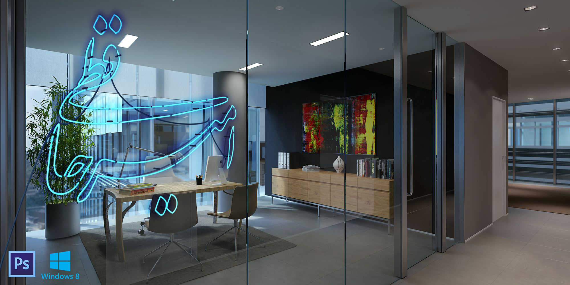 نوشته ی روی شیشه بوسیله نرم افزار فتوشاپ سه بعدی شده